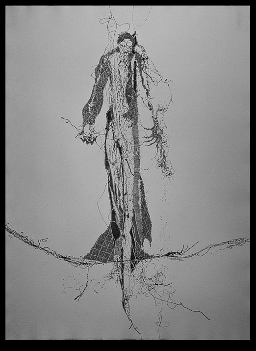 Federzeichnung Handzeichnung Mischtechnik Feder -Tusche auf handgeschöpftem Bütten Ölmalerei Öl auf Leinwand Lasurmalerei Holzschnitt Holzschnitt vom verlorenen Druckstock Hochdrucktechnik Materialdruck Frottage