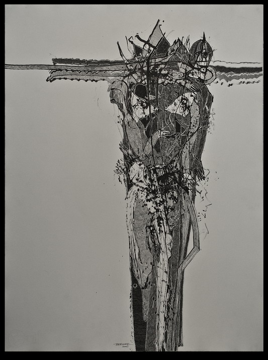 Federzeichnung Handzeichnung Mischtechnik Feder -Tusche auf handgeschöpftem Bütten Ölmalerei Öl auf Leinwand Lasurmalerei Holzschnitt Holzschnitt vom verlorenen Druckstock Hochdrucktechnik Materialdruck Frottage