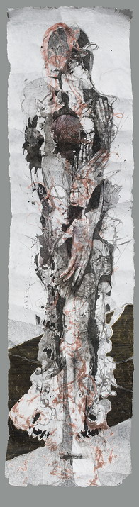 Federzeichnung Handzeichnung Mischtechnik Feder -Tusche auf handgeschöpftem Bütten Ölmalerei Öl auf Leinwand Lasurmalerei Holzschnitt Holzschnitt vom verlorenen Druckstock Hochdrucktechnik Materialdruck Frottage